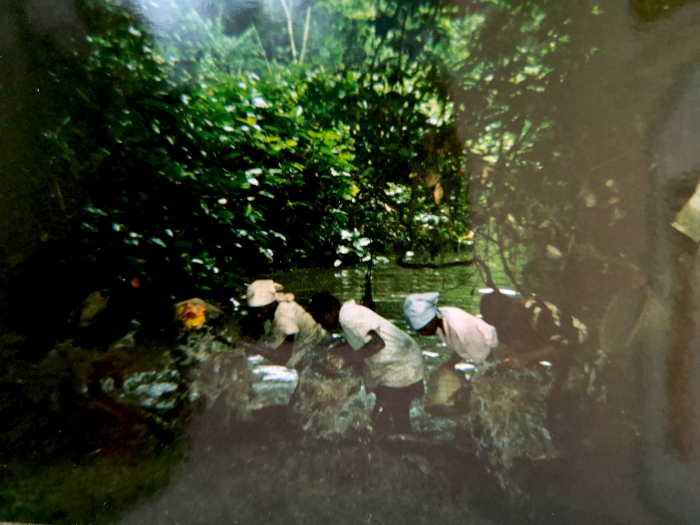 As they finished, a second group built another dam some 20 yards further back creating a trapped pool of water. When all was complete women stood in the trapped water close to the dam holding cut down plastic containers which they used to furiously scoop water over the dam to gradually empty the pool. As the water in the dammed pool got to ankle height, they were able to catch any fish trapped. At the end the dam was dismantled. A good example of women as hunters rather than gatherers.