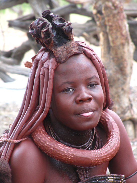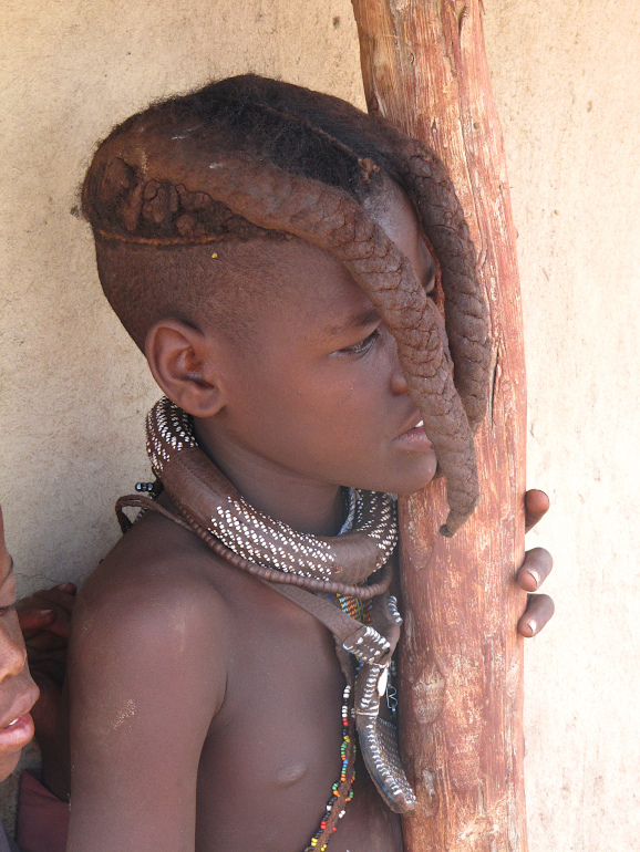 They struck me as looking very similar to the Hamer people of Western Ethiopia. The women wear only a skirt of goat skin, and their skin and hair are covered with red ochre mixed with fat. They wear only beaded adornments on their upper body and wrap themselves in a blanket shawl when it is cold. Hair styles mark your progress as a woman through to motherhood. They wander quite unselfconsciously in town and even in Windhoek shops in their traditional style. The men wear woolly bobble hats, western shirts and cotton wraps.
